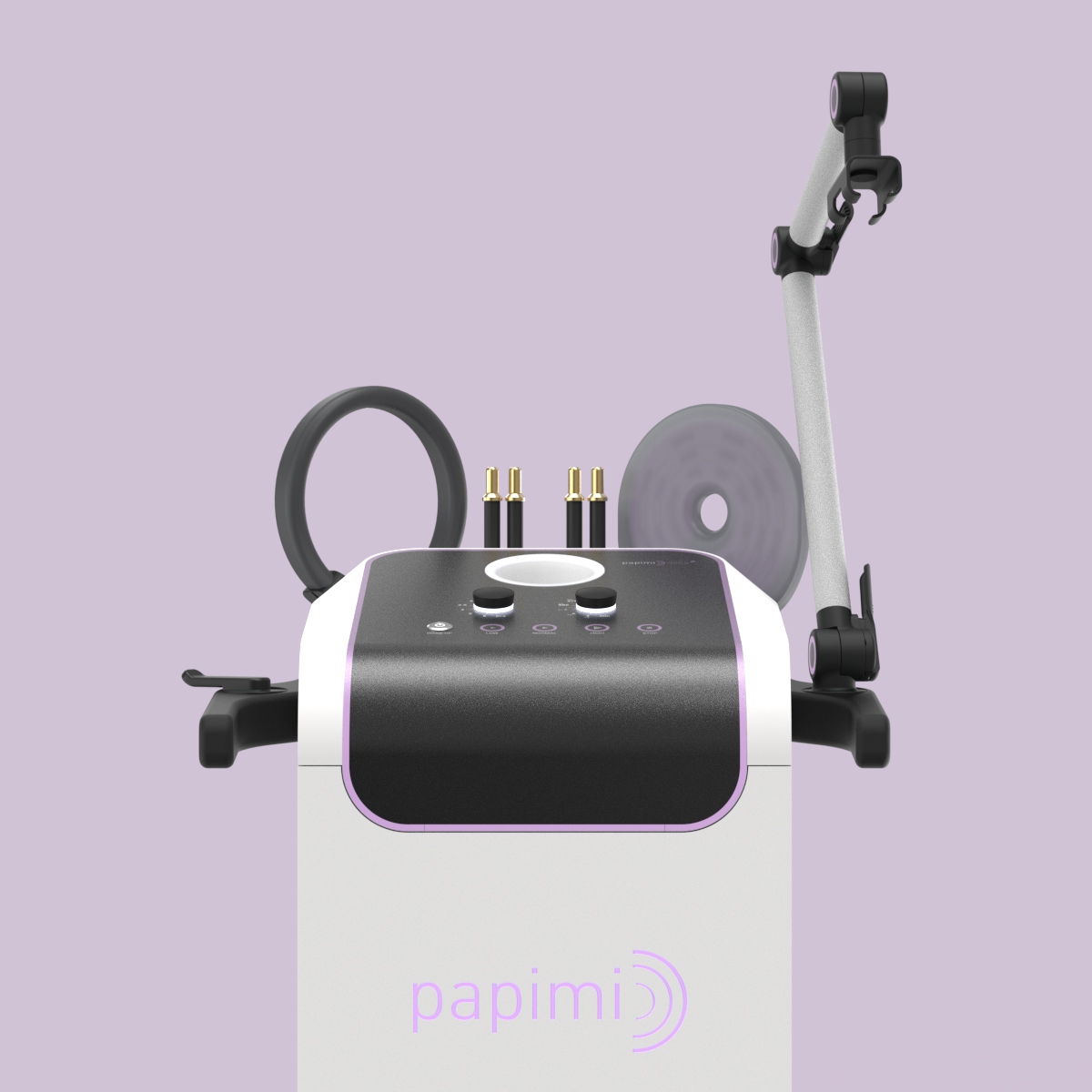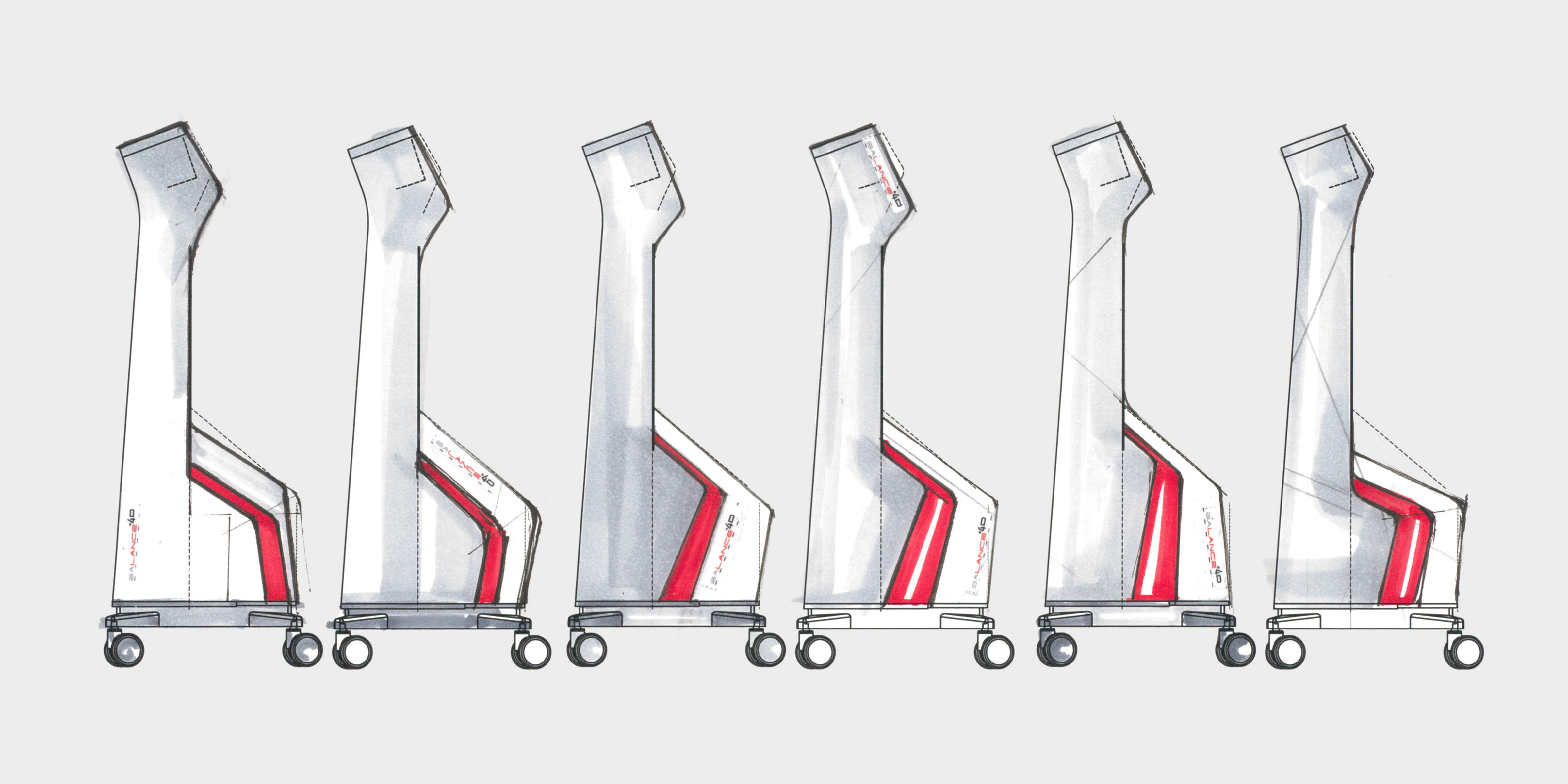 Das mobile Gerät unterstützt die Anwender durch ein integriertes Positionssystem bei der Ausrichtung auf die Patienten und zeichnet sich angenehm durch seine zurückhaltende Formensprache aus. Neben der formalen Ausstrahlung lag hier auch die ergonomische Gestaltung und die technische Umsetzung bei OXXID.